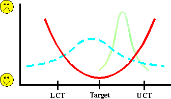 Classical Quality Control uses upper and lower specifications as boundaries between acceptable and unacceptable performance. Performance between the specifications is considered equally acceptable. Taguchi states that the customer's increased dissatisfaction with any deviation from the target value can be approximated by a quadratic function. The limits are not the engineer's specification but the customer's tolerance limits. The lower customer tolerance limit is shown as LCT in figure 1.