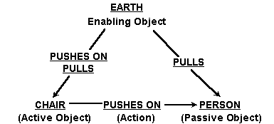 "Oh! I know," shouts one of the female students. "The earth! The enabling object is the earth." The instructor draws the following diagram on the flip chart.