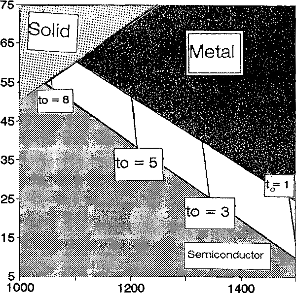 The numerical solution [21,22] shows that T-M line separates a region of possible superconducting state from a region with normal state for P discussed below. ST could begins from Tl ~ 900 K and ends at Tt for actual M and N. LP unstable at very high T, so region of ST could ends at Tu = Eg which is ~ 1500 K in l-Se. Since l-Se is a semiconductor near Tl, it is necessary to apply P that shifts F to Em i.e., to the state nearby to the semiconductor - metal transition then t » |F-Em| [21], but not deep into a metallic state where LP are destroyed in l-Se. Hence, the lower and upper pressures limits are estimated as: