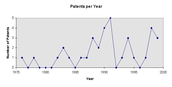 Self-heating container technology has had patent activity from starting from 1976. The patent activity during the ensuing 23 years has been varied and non-consistent. These particularities make self-heating technology an ideal candidate for maturity mapping. Data were collected relevant to the technology that would provide necessary information to create the required graphs represented in figure 1.0. The search criteria was devised using Boolean operators selected to insure capture of relevant and associated self-heating technologies. The abstracts were then reviewed for relevancy and the database was modified accordingly. A properly constructed search can reduce the abstract review period while a search criterion that is too broad in nature will significantly increase the abstract review period.
