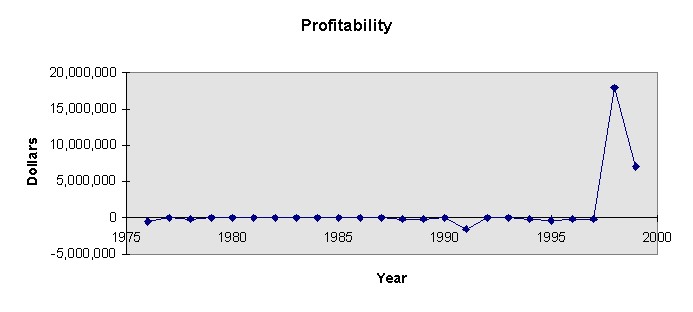 Profitability and bookings were investigated and plotted in the following Figures 6.0 and 7.0. There are many indicators that are evident without utilizing profitability data, as the company in question is a relatively young company. It is primarily in the "start-up" phase with reference to the evolution of the organization3.:
