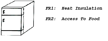 When we reduce the FRs to a minimum (or simply define them inappropriately) - as in Suh's example of freezer door design; where the Requirements are reduced to 1) minimise energy (cold air) loss, and, 2) provide good access - we may well actually be shutting ourselves off from a significant sector of the actual customer base.