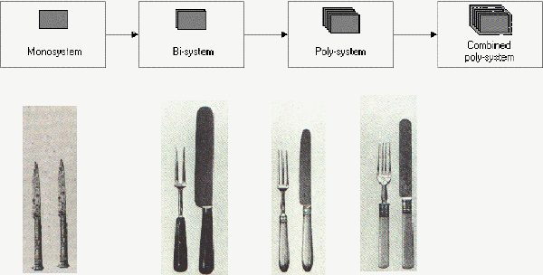 By way of example, note how in Figure 1 the evolution of the fork influenced the evolution of the knife - and particularly how, as soon as the fork was able to adequately perform the holding function, the knife no longer needed to be pointed and became a much more friendly rounded shape.