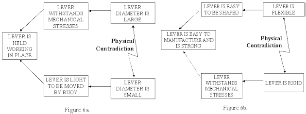 An automotive fuel level meter was being damaged during installation and maintenance operations due to mechanical stresses imparted to the relatively thin and long metal lever that transmits movement from the buoy to the electric cursor inside the meter. Two CRDs disclosed the contradictions shown in Figure 6, which then quickly led to an amazingly simple and cost effective idea that significantly increased the mechanical strength and solved the problem.