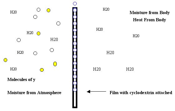 Any method of keeping the y molecules out of contact with the wearer while allowing moisture vapor to leave the body is acceptable. The solution is limited by nothing.