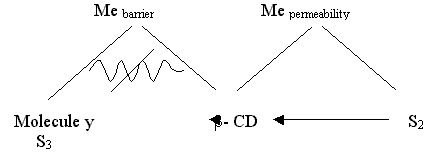 b- cyclodextrin molecules chemically bond to the molecules of the substance y, so that they do not pass to the other side.The primary useful function of the barrier substance is that it chemically bonds to the