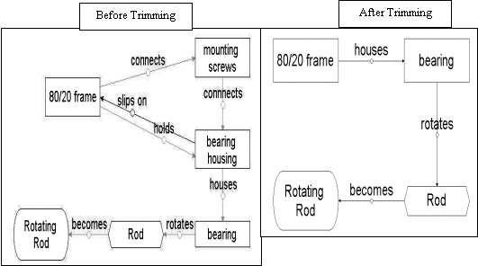Trimming is the process of examining the system and removing parts. Parts are “trimmed” by identifying other componentsor freely available resources that can supply the function of the part to be trimmed. Transferring the function of the part removes the necessity for that part. Ideality and trimming are closely related as one can see from Equation 3.1. Removing a part from a system will result in lower cost, which raises the Ideality of the system. The following is an application of trimming from this research. The change in Ideality of the system will also be shown.