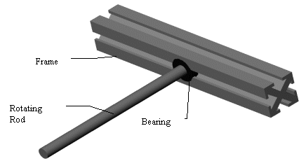 This assembly was examined for components that could be removed to improve the Ideality. It was identified that the frame could supply the function of the bearing housing and the button cap screws by acting as the stabilizer and mount. The harmful action of the bearing housing slipping on the frame will also be removed because the bearing will be constrained by the frame. Figures 3-10 and 3-11 show the solid model and functional diagram after trimming.