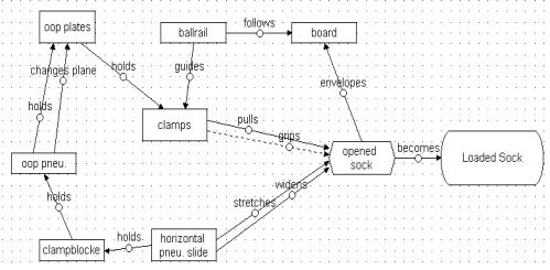 The loading 'fingers' were determined as a possible area to reduce the sock damage occurring due to widening the sock. The TRIZ principle 'dynamicity' was selected to resolve the general problem of how to change the 'shape' of the sock without causing any 'harmful side effects'. The definition of dynamicity is “make characteristics of an object or outside environment automatically adjust for optimal performance at each stage of operation.” [6]. This principle must now be applied to the problem using specific terms.