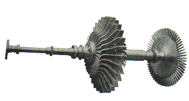 Over this same period, it is useful to note how the engine complexity has altered. A vivid comparison comes through examination of the turbomachinery components of the engine. Figure 2 illustrates the rotating components of one of the first gas-turbines developed by Sir Frank Whittle. The system comprises a single rotating shaft, carrying a single stage of compressor – incidentally, manufactured from one, machined from solid, component – and a single stage turbine made up of 60 blades.