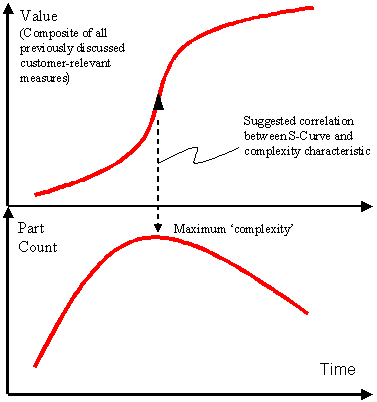 1) Relationship Between Evolution S-Curve and Part-Count (Complexity) Characteristic