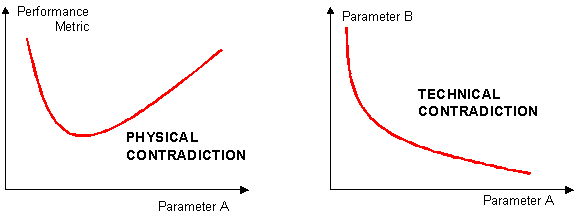 The parabolic shape of the total-cost curve is characteristic of a physical contradiction. This mapping between a parabolic curve and a physical contradiction is complementary to the previously described (Reference 5) relationship between hyberbolic-shaped curves and technical contradictions – Figure 2.