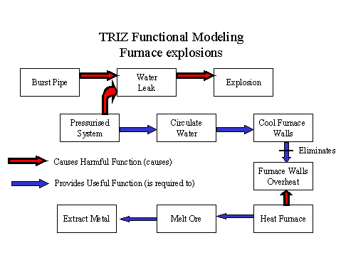 The case involves the need to design a furnace and the desire to avoid a particular problem associated with the cooling system. The simplified TRIZ functional model is shown in Figure 5.