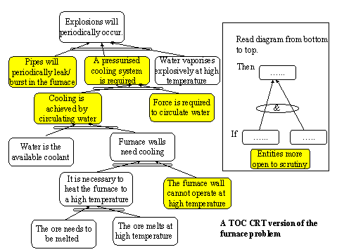 TOC has been developed to deal with organisational improvement and would not normally be applied in this way to a technical problem, but it does raise some interesting perspectives on the integration of these two approaches.