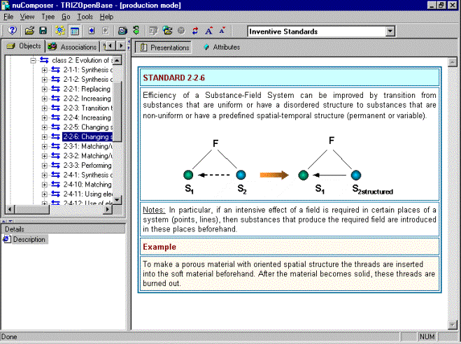 The TRIZ Explorer is built using a knowledge management system “nuComposer” and is provided with a help file and tutorial that guide the user in adding new data to the database, and in managing the data which have been accumulated. NuComposer can manage web pages, powerpoint slides, or Word documents, to add to any of the existing items, or to add new items.