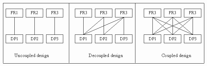 The problem is how to decouple a coupled design. It is obvious to modify design matrix to be either diagonal or triangular. In practice, many coupled designs undergo changes and become a decoupled design through a trial and error process that is in opposition to TRIZ methodology.