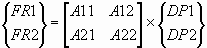 There are two FRs but only one DP in the design solution. The number of DPs is less than the number of FRs. Based on the Theorem 1, the design is either a coupled design result, or the FRs cannot be satisfied. It is clearly that this is a coupled design because DP1 affects both FR1 and FR2. The design equation is: