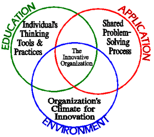 The three arenas of Figure 1 illustrate the three arenas that characterize innovative organizations. The larger the area of overlap between the three arenas, the greater the likelihood of innovative outcomes.