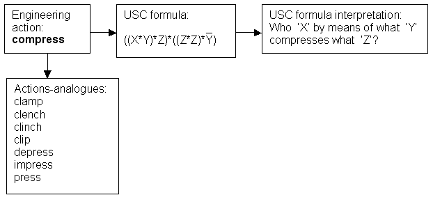 The USC-classifier contains engineering actions list and USC formulas classified in a certain way. In the USC-classifier all engineering actions are analogues. Each main engineering action has own USC formula that determines this engineering action and verbal interpretation demonstrating the action at issue. Each action-analogue has own main action.