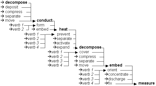 After analysis of patents for methods it was developed the order of verbs location in structures like this [7]: