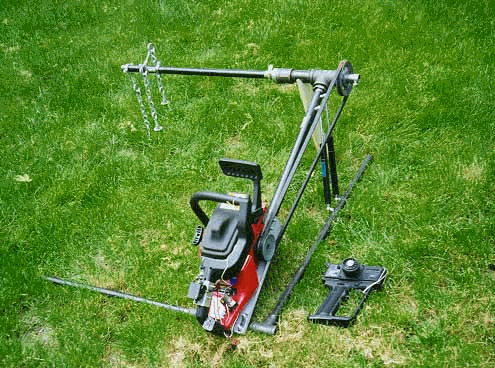 three chains, powered by a small gasoline engine, in this case a modified