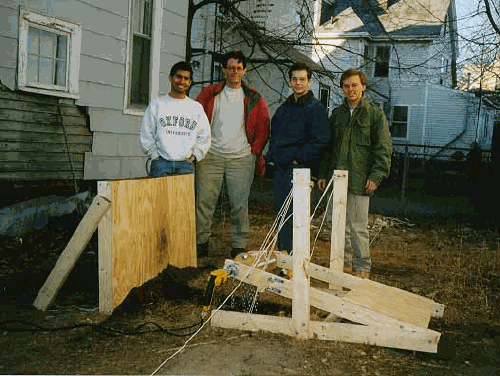 Figure 2 - Prototype #1, shown with the class (l to r) Felipe Varela, David Levy, Jeremy Walleck, Andrew Heafitz
