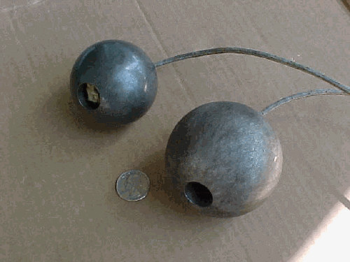 Both spheres are made of a mild steel. The smaller was made by drilling a