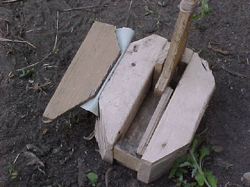 Work to date includes two prototypes. The first prototype was electrically powered, with a wooden frame. It was used to investigate the concept of digging with a flail-type device, and to develop the digging heads located at the ends of the chains. This device proved that digging was a viable concept. The first prototype dug the hole shown in Figure 3 in 30 seconds using a 1 HP motor.