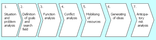 The amount of generated ideals is considerably faster and higher compared with the solutions managers usually come up with. Especially for critical cases a problem solving process with the following main phases is suggested: Function and Conflict Analysis, Mobilisation of Resources, Generating of Ideas, Evaluating of the Results and Anticipatory Risk Analysis.