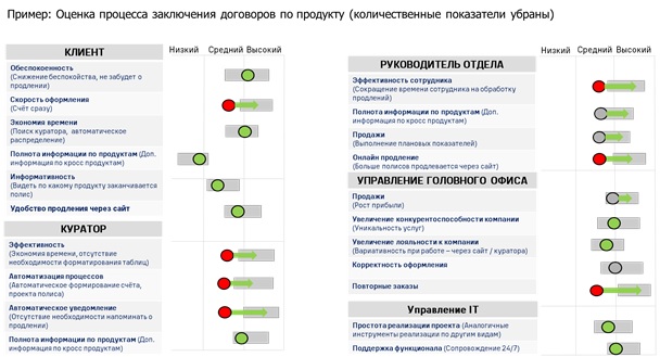 На основе сравнения требований с уровнем реализации, уже достигнутым продуктом, и строится программа работ в рамках проекта – определяются направления дальнейшего развития, выявляются противоречия, мешающие требуемым изменениям, вводятся критерии для сравнения с конкурентами, ищутся способы альтернативного исполнения или форсирования отдельных функций. Предполагается, что по этим же критериям впоследствии будет проводиться оценка разработанных в проекте новшеств.