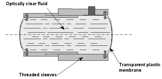 A conventional solid lens (level 1 in the substance hierarchy) is replaced with a fluid lens (level 2 in the hierarchy). A typical fluid lens is shown in Fig. 10. The two threaded sleeves allow for altering the length of the chamber filled with an optically clear fluid (e.g., a gel). Any change in the size of the chamber results in altering the degree of curvature of the two transparent flexible plastic membranes, which, in turn, causes change of the focal length of the lens unit. If one changes the chamber volume with the help of mechanical means similar to those used at Phases 1 or 2, then both operation and control fields act upon the same macro-level substance structure of the governors components.