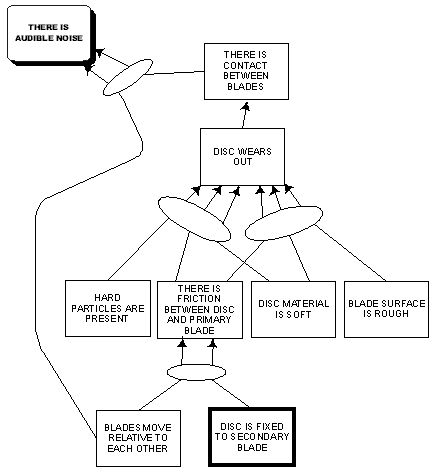The blades of a truck’s rear spring set are separated by a plastic disc intended to eliminate the squeak noise due to friction between the blades. However, the plastic disc quickly wears out and noise begins. Again, the CRT in Figure 3 was useful to complement the understanding provided by a previously built functional diagram. The CRT pinpointed the basic problems that were giving rise to the final noise effect (which was not apparent in the functional diagram).