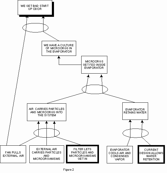 Then the initial problem “we want to eliminate bad start up odor” could be more precisely restated as the following mini-problems, which pinpointed two main directions for solution, either of which could eliminate the odor effect: