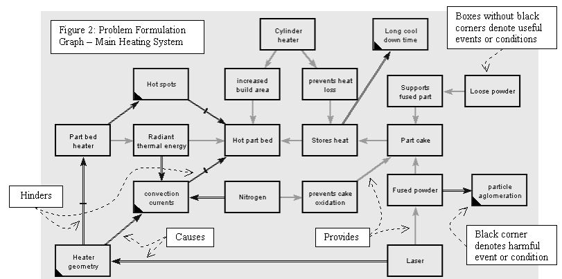 Solving difficult problems is a complex activity that is governed by the search for knowledge. Problem solving is affected by a combination of the searching process and by the availability of the knowledge required to solve the problem. This paper describes the application of the Ideation/TRIZ Methodology and specific analytical and knowledge-base tools as used by DTM Corporation to solve a complex technological problem.