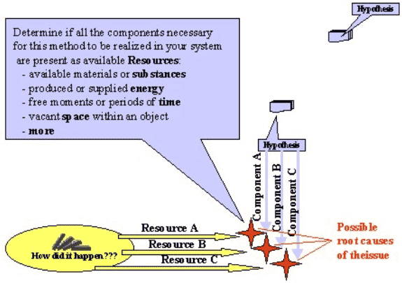Upon listing all available resources in the system, the most like hypothesis can be carried out. In majority, if all resources within the system or its environment support the considered hypothesis, the problem is solved.