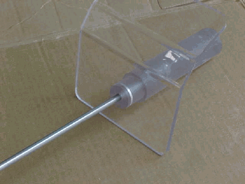 handle and into the mating a hole on the shield. A wood mock-up quickly